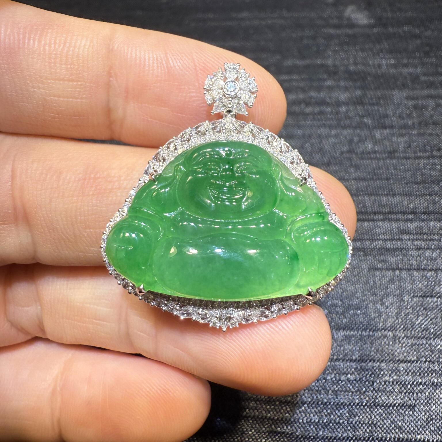 老坑翡翠-鑲鑽滿綠玉佛公掛墜