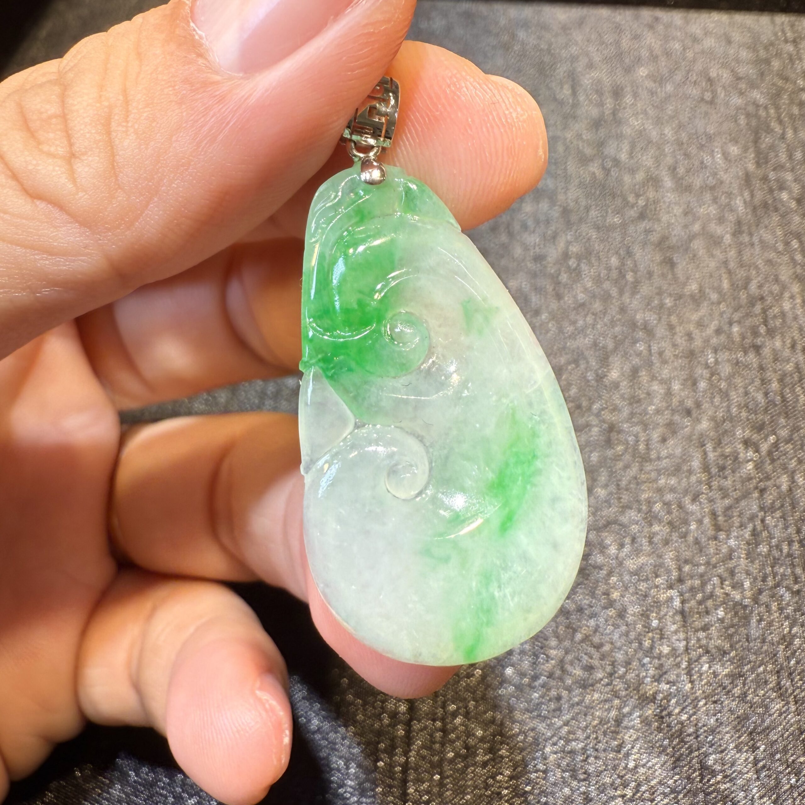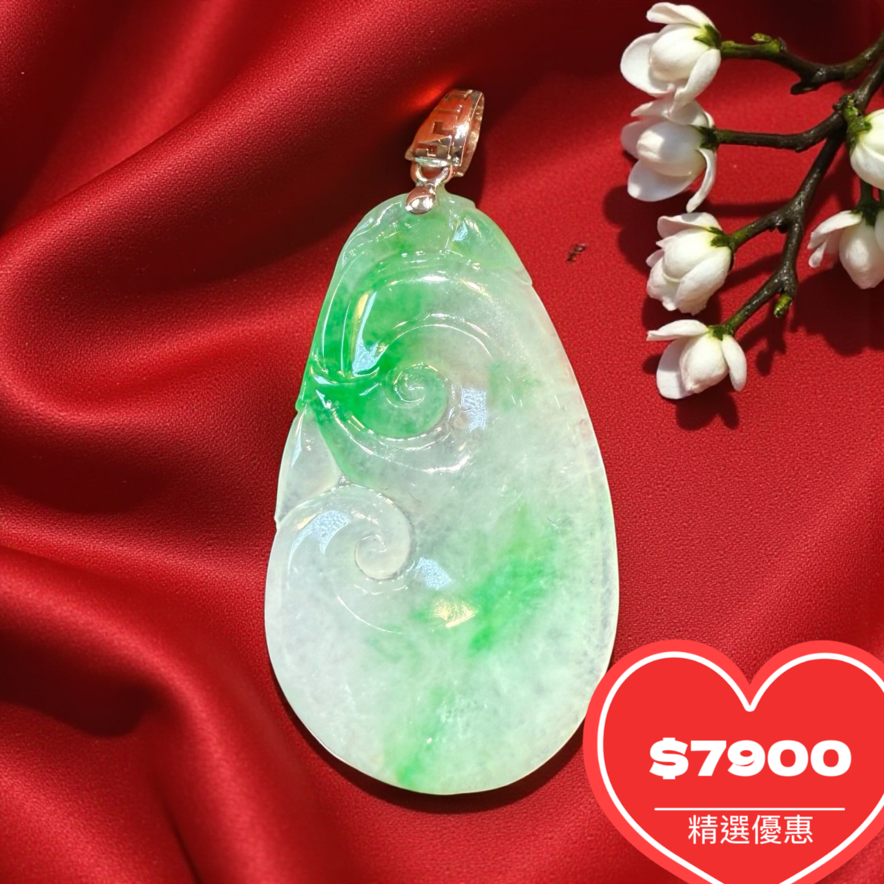 【冰種帶綠翡翠】如意祥雲掛墜 (22238)