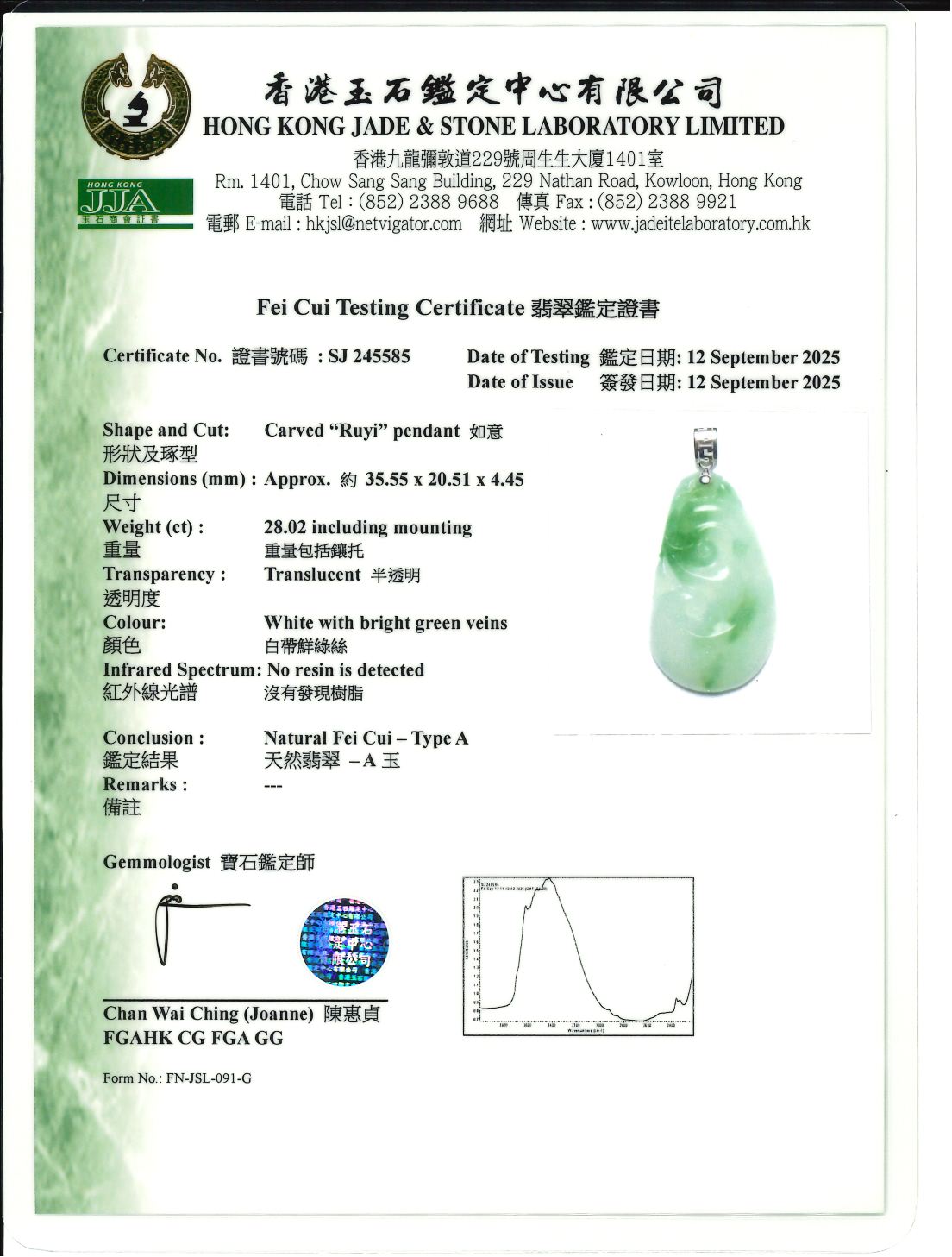 ✨ 行家品評: 此品展現老坑冰種的通透靈氣,玉質冰潤細膩,起瑩感十足。翠色鮮陽靈動,層次分明。結合揭陽名師精工雕琢,線條圓潤流暢,上手感溫潤厚實,是一件兼具種水與色澤的行家級精品,由灣仔 20 年老店信心保證。